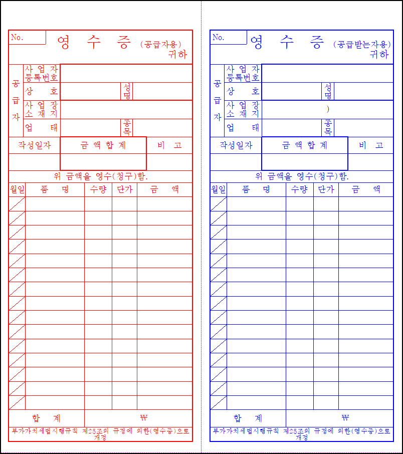 부가가치세 과세사업자가 교부하는 약식 계산서 문서